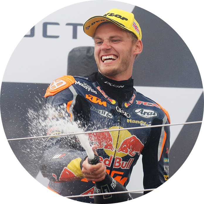 The South African played a rare hand in dominating the frenetic and fiercely-competitive Moto3 feeder class, sealing the championship with four races to go.